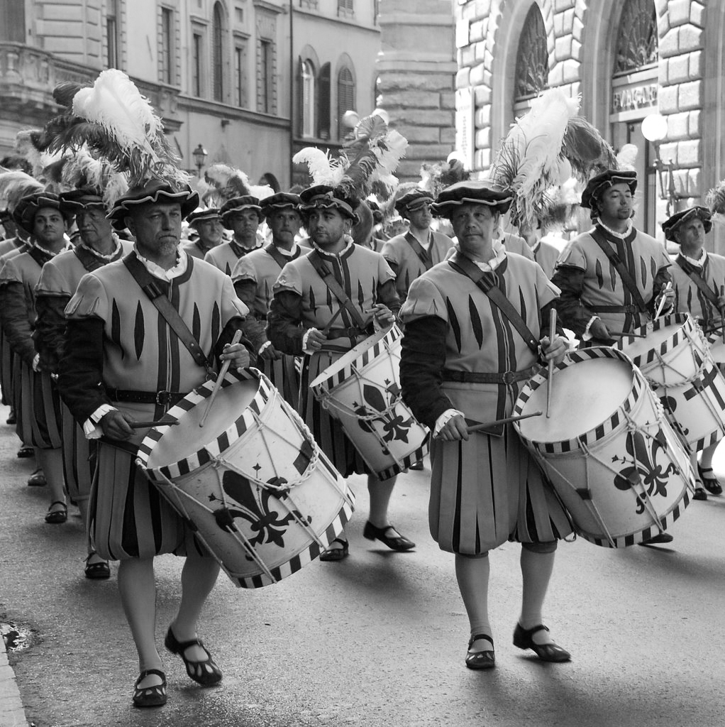 Seguendo gli insegnamenti della grande tradizione della pelletteria fiorentina, abbiamo realizzato, per le sfilate in costume del Calcio Storico, le cinture e le bandoliere dei tamburi